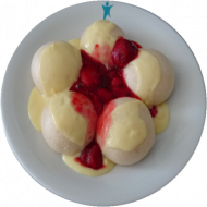 Weihnachtsessen: Rehgulasch mit Rotwein, Esterhazy und Preiselbeeren (1,3,21,24,81) dazu geschmorter Spitzkohl und ein hausgemachter Semmelknödel (15,19,81) |